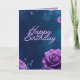 Mystical Purple Rose Folded Birthday Card, Blank Card. Blank inside with purple interior, Happy Birthday on the Front.