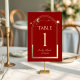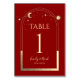 Mystical Red Gold Sun Moon Stars Celestial Wedding Table Number