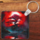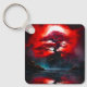 Dramatic fantasy landscape with a glowing crimson tree standing beneath a luminous full moon.