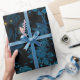 Deep blue, teal and purple damask pattern wrapping paper with luminous golden stars.