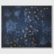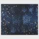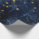 Navy blue gothic floral wrapping paper with luminous golden stars.