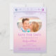 Mystical Sunset Pink Sun Moon Stars Space Save The Dates features a pink and purple sun, moon and stars frame on a pastel beach sunset background. Inside is your favourite photo and your custom save the date information. Personalise by editing the text in the text boxes. Designed for you by ©Evco Studio www.zazzle.com/store/evcostudio