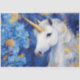 Bring magic and elegance to your DIY projects and celebrations with this Mystical Unicorn Decoupage Tissue Paper, featuring a majestic white unicorn with a golden horn, surrounded by delicate blue blossoms and shimmering gold accents against a celestial deep blue background. This versatile craft and wrapping paper is perfect for decoupage, birthday party decorations, wrapping gifts, junk journalling, scrapbooking, and fantasy-themed DIY projects.