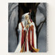 A wise and enigmatic wizard stands beneath a towering, ancient tree, cloaked in flowing white robes trimmed with rich red and gold. His staff, crowned with a glowing gem, hints at powerful magic, while a shadowy raven perches just behind his shoulder like a silent guardian or omen. The fog-draped forest wraps the scene in mystery, evoking themes of ancient knowledge, solitude, and arcane power. Perfect for fantasy lovers, gothic art enthusiasts, and those drawn to magical worlds filled with hidden stories.