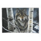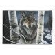 A striking and soulful portrayal of a lone wolf emerging from between snow-dusted birch trees, this artwork captures the quiet intensity of the wilderness in winter. With glowing amber eyes and richly detailed fur, the wolf stands watch over a serene snowy landscape, where a winding river cuts through the forest under a dusky sky.