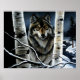 Mystical Winter Alpha Wolf Birch Forest Wildlife Poster