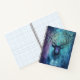 A mesmerising personalised notebook featuring your name beneath a majestic stag with tree-like antlers, painted in rich shades of blue, turquoise, and violet. Snowflakes gently fall around the deer, creating a magical winter forest atmosphere. This ethereal watercolor design captures strength, serenity, and the beauty of nature — ideal for journalling, sketching, or as a unique woodland-inspired gift.