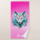 Add bold, mystical energy to your bathroom with this Personalised Wolf Bathroom Towel, featuring a striking turquoise wolf with fantasy-inspired details on a vibrant pink background. Customised with your name or monogram, this towel is perfect for teens, wolf lovers, or anyone who loves colourful, magical animal designs.