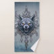 Mystical wolf head. The wolf's eyes glow in a hypnotic yellow, as if they had captured the light of the stars. They look deep into the soul of the viewer and seem to hold the knowledge of times gone by. Its mouth opens in a menacing growl. In this moment, the wolf becomes the guardian of a forgotten world, where myths come to life and the boundaries between reality and fantasy blur.