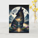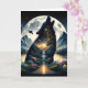 Mystical Wolf Howling at Moon Surreal Birthday Card