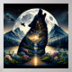 Mystical Wolf Howling at Moon Surreal Personalised Poster