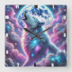 Mystical Wolf Howling Under Vibrant Cosmic Moonlit Square Wall Clock