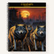 Mystical wolves howl under a glowing moon at dusk notebook