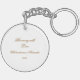 The reverse side offers a minimalist contrast: a clean white background featuring an elegant script in a refined gold-toned hue. The text, name, and year can be easily customized, making this keyring a truly unique and personalized gift.