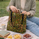 I LOVED this bag! The colours are vibrant and the quality of the bag itself is great. It’s polyester but it’s sturdy and the base sits flat on the ground so it’s able to stand up without falling over when there’s contents in it. I’m really happy with the bold and bright colours and how this bag has turned out. Thanks Zazzle!