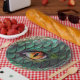 This magical and enchanting party plate features a mythical fantasy theme. A large dragon eye is pictured in the centre, surround by glowing scales and gold textures.