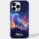 Add a mythical touch to your phone with this phone case, which features a majestic white griffin with a mane of swirling galaxies, standing proudly on a rocky outcropping overlooking a nebula-filled sky, with the setting sun tinging the clouds orange and yellow. Personalise with a name!