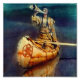 NC Wyeth , was an American artist known for his realist paintings and illustrations of the old west. During his lifetime, Wyeth became one of America’s greatest illustrators and he created over 3,000 paintings and illustrations. His early trips to the old west inspired images of cowboys and Native Americans that dramatised the frontier. This painting is called “The Moose Call”, and depicts an Indian hunter sitting in a canoe calling moose with a rolled bark trumpet .