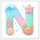 Introducing the "N" Underwater Theme Letter Sticker, a delightfully cute and vibrant design!