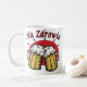 This design features a toast with two beer or piwo mugs and the words Na Zdrowie. Na Zdrowie means "cheers" or "to your health", in Polish. Great gift for anyone from Poland.