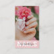 This simple design has space for a photo of your nail art on the front with your name. You can add your contact details and a QR code to the back.