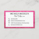 This professional business card design offers a modern and luxurious look with its faux Hot Pink texture. It can be customised to fit your individual style, making it perfect for professionals who want to stand out from their competitors. It is particularly suitable for event planners, boutiques, hair salons, nail salons, cosmetics businesses, stylists, and other creative professionals. The card is easy to personalise with your own text and images, allowing you to make it truly yours.