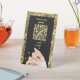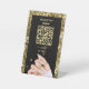 A Nail Salon black and gold glitter custom business scan to pay by Venmo QR code pedestal sign in a modern minimalist style. The versatile template can easily be updated with your nail artist name, graphic or photo, QR code, custom text, payment icon and social media icons ) or payment icons (such as Zelle, CashApp, Paypal, Bitcoin) and so much more!