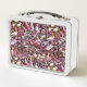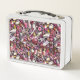 This is a standard metal lunchbox that appears to work just fine. We designed this box ourselves with an uploaded photo and custom text on the front and back. It looks absolutely beautiful except the front of the lunchbox is not centered like it shows in the photo. The print borders don't align with the inset flat part of the box where the preview photo online showed it perfectly centered in there. The back looks nice and centered though.