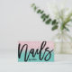 This is the perfect business card for a trendy, stylish, girly, and modern Nail Technician. This design features simple black brushstroke typography on a faux printed pink glitter and turquoise green ombre gradient glamourous and chic background. Whether you are an independent nail tech or you work for a salon these cards will add that personal and professional touch to your business and career advertisement.