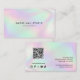 Make a bold, modern impression with this minimalist holographic business card featuring a built-in QR code for seamless digital connection. Designed for creatives, entrepreneurs, and social media-driven brands, this card blends a sleek aesthetic with functional design to help you stand out and grow your online presence. Perfect for content creators, beauty professionals, influencers, photographers, and small business owners, this design allows clients to instantly access your Instagram, website, or portfolio with a quick scan. The soft holographic gradient adds a trendy, high-end feel while keeping the layout clean and professional. Easily customise with your name, handle, and contact details to create a polished and memorable brand experience. Design by 1201AM Creative Studio