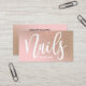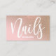 This is the perfect business card for a trendy, stylish, girly, and modern Nail Technician. This design features simple white handwritten brush script typography on a faux printed diagonal gold glitter and blush pink ombre gradient glamourous and chic background. Whether you are an independent nail tech or you work for a salon these cards will add that personal and professional touch to your business and career advertisement.