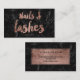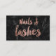 Nails Lashes faux rose gold script black marble Business Card