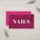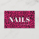 Beautiful elegant nail technician business card featuring animal print on pink background. You can customise it with your own details. Professional modern chic look.