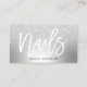 An elegant modern, stylish nails specialist business card with silver glitter ombre metallic foil. all text is customisable, add your social media.