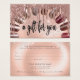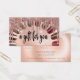 Modern, elegant rose gold nails gift certificate. Design features set of nails, rose gold glitter drops, ''a gift for you'' typography script in black on a rose gold background. Personalise with your details on the back.