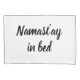 Namastay in bed brush script lettering pillow case. Create your own unique hand lettered bedding with custom quotes. Elegant calligraphy typography template. Beautiful handwritten bedroom decor, covers and bedding. Black and white handwriting design with swirly text. Funny Holiday or Birthday gift idea for yoga fan, lazy person, couple, boyfriend, husband, wife, bride, girlfriend, friends, family etc. Customisable colours. Relax humour.