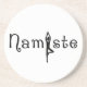 A drawing of the word "Namaste" with a person doing a yoga pose replacing the second "a".