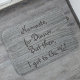 Grey wood background with funny Namaste text, "Namaste, for Dinner. But then, I got to Go, Yo!"