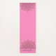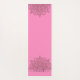 A modern attractive pastel pink yoga mat with flowery mandala universe symbol and a trendy script typeface namaste, for your yoga practice and everyday exercise! Modern stylish design.