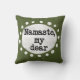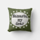 Bold text reading "Namaste, my dear" is centred against a green background. The black text sits on a white circle with large textured white dots around it, providing a playful contrast against the colourful backdrop.