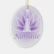 A soft violet lotus blossom with a yoga woman by artist/designer Charmaine Paulson on a Christmas Ornament.