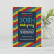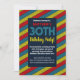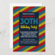 Surprise your birthday party guests with these colourful invitations which give a modern twist on a Celtic stripe. Use "Personalise this template" to tweak the the text to match your event. White, red, yellow and blue text in stylish fonts is framed by stripes of the same colours over a dark blue.
