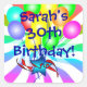 A bright, fun colourful balloon bouquet on a rainbow of colourful ribbon swirls ready for you to personalise with any name and birthday age. For any age, including over the hill birthdays! Shown is "Sarah's 30th Birthday!" A great special occasion fun and colourful sticker! Shown is the square sticker.