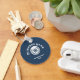 A simple nautical design in deep navy blue featuring a steering wheel, with Your Business name above it, and your logo or photo on the back of the Keychain. This charming combination invites your visitors while capturing the maritime essence of your space.