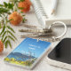 name and professional title key chain. Grand Teton National Park, Wild flowers and lake, mountain and blue sky.