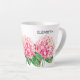 NAME and Watercolor Pink Hydrangea Floral Latte Mug