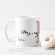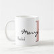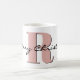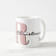 Merry Christmas in elegant black script, a large initial in April birthstone pink diamond, and name in a simple modern font decorate this bold 11oz classic coffee mug. Large capacity for hot or cold beverages. Easily change the initial, text and name to make it yours using the Template provided. Ideal for family Christmas morning coffee or celebrating throughout the winter holidays. Thoughtful gift for sorority sister, best friend, girlfriend, teacher, barber or like a mother. Also available in 15oz and many other mug styles. See "About This Product" for more information. Special pricing.