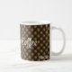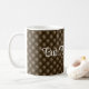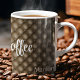"But, First Coffee" quote in a modern white script and name on a brown tufted pattern decorate this 11oz beverage mug. Easily change text and name to make it yours using the Template provided. Also available in 15oz and other mug styles. See "About This Product" at side for more information.