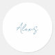 Name Calligraphy Script Plain Simple White Blue Classic Round Sticker