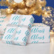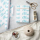 Name Calligraphy Script Plain Simple White Blue Wrapping Paper